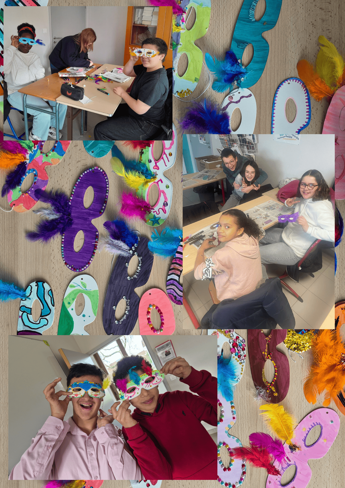 Atelier de masques de carnaval cette semaine pendant la pause méridienne ; exposition au réfectoire dès le lundi 2 février.