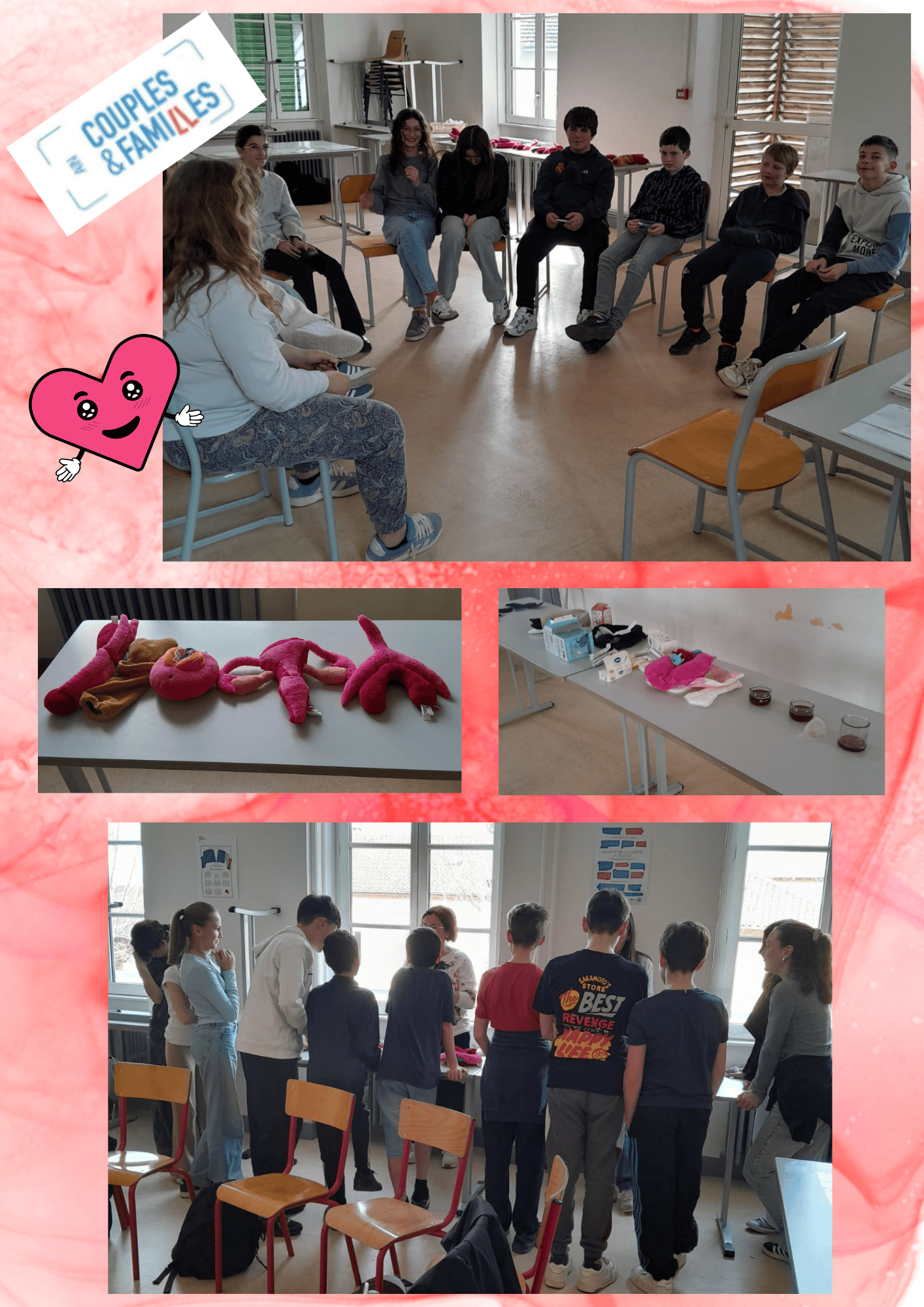 Dans le cadre programme EVARS intervention de Couples et Familles de l'Ain auprès des trois classes de 5ème en groupe pendant 2 heures.Â