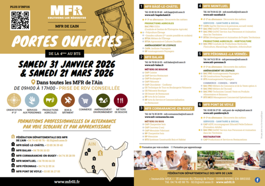 JPO dans les MFR de l'Ain pour préparer la rentrée de septembre 2026 !